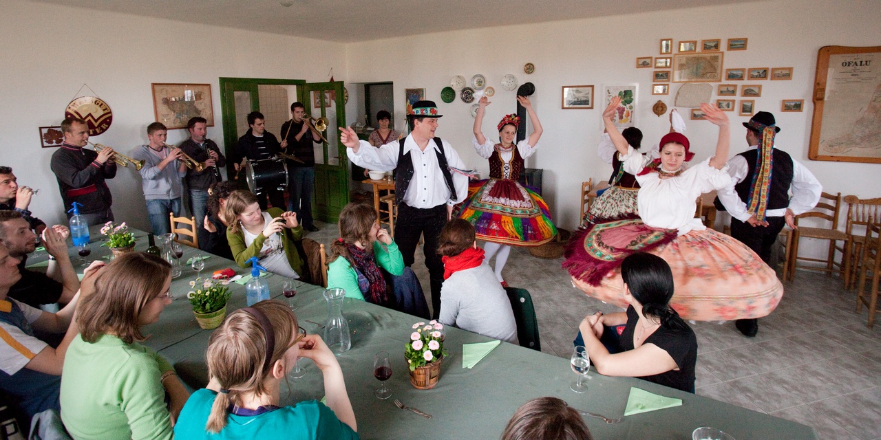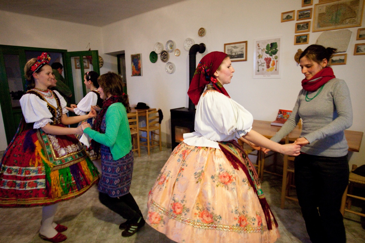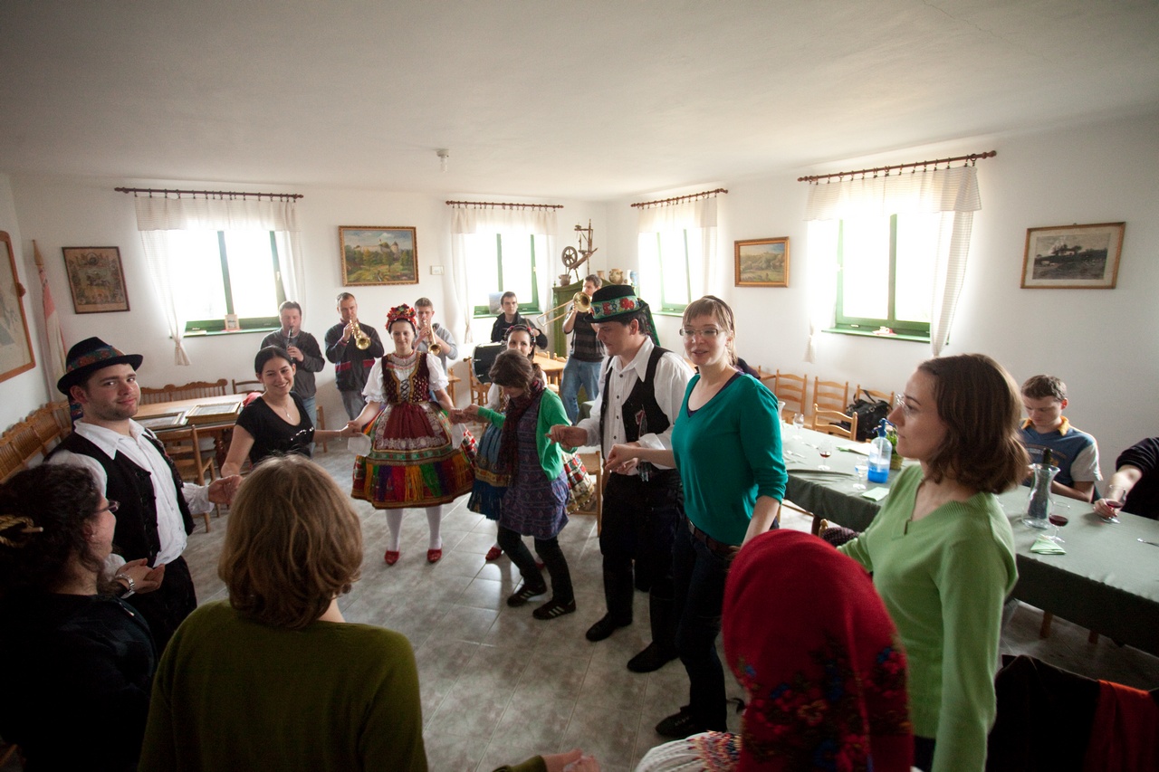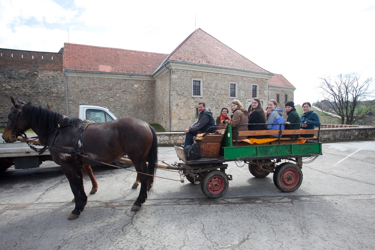 Szombaton pedig Zengővárkonyba és Pécsváradra látogattunk el. Noha az időjárás eleinte nem tűnt a legbarátságosabbnak, azért nagyon jól éreztük magunkat. Zengővárkonyban megtekintettük a Míves Tojás Múzeumot, a tájházat és a Szalma-Kincs-Tárat. Mire megérkezett a “buszunk” (ami valójában egy lovas kocsi volt), a nap is kisütött! Pécsváradon megnéztük a várat, majd a délután további részét egy pincében töltöttük finom pécsváradi borok kóstolásával. Meglepetésként megjelent a zengővárkonyi néptánccsoport is, akik nem csak bemutatták a Sárköz hagyományos táncait, de igyekeztek meg is tanítani azt a diákoknak. Remélem, hogy minden regensburgi diákom számára emlékezetes marad ez a nap!